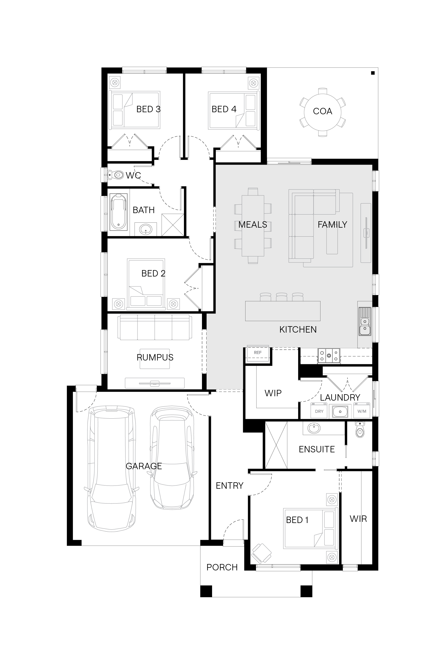 Crafted to adapt as your family grows, the Ballina offers clearly defined zones for connection and retreat. A spacious open-plan kitchen and family area lead to a separate rumpus and four well-placed bedrooms, giving everyone their own space. From the walk-in-pantry to the covered outdoor area, every corner has been thoughtfully considered.