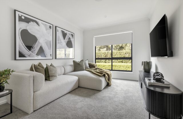 At the front, a quiet main bedroom and rumpus offer space to unwind, while the rear opens into a light-filled living made for connection. Each bedroom has its own walk-in robe, and the kitchen sits at the centre, with everything flowing easily around it. From weekend entertaining to everyday rhythms, the Carson makes it easy to settle in, spread out, and get on with the day.