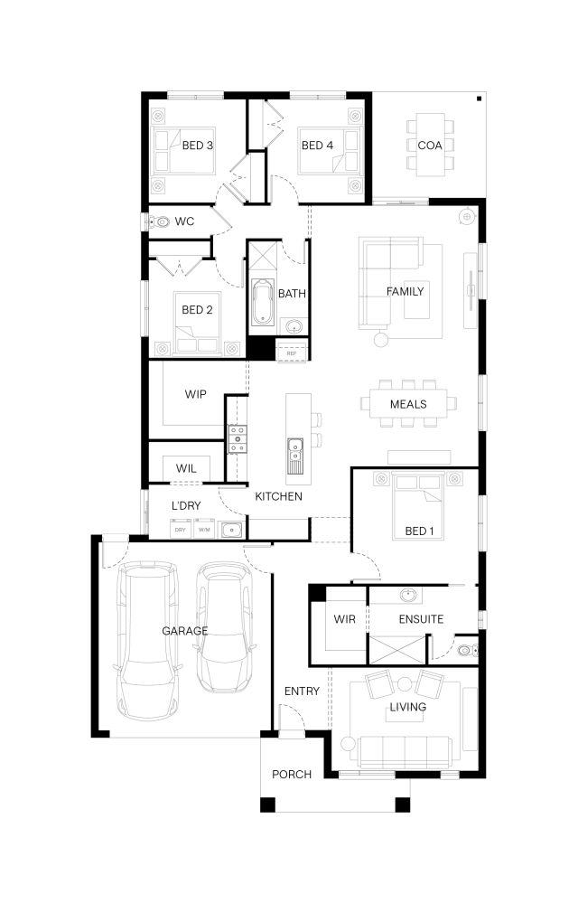 With open-plan spaces for connection and quiet corners for rest, the Shoal balances togetherness with privacy. A rear bedroom wing creates a peaceful zone for kids or guests, while the front main bedroom is a space to unwind. At the centre, the kitchen is set slightly apart yet remains the hub of the home, with room for cooking, cleaning and generous storage. It?s a layout that adapts to every moment of the day.