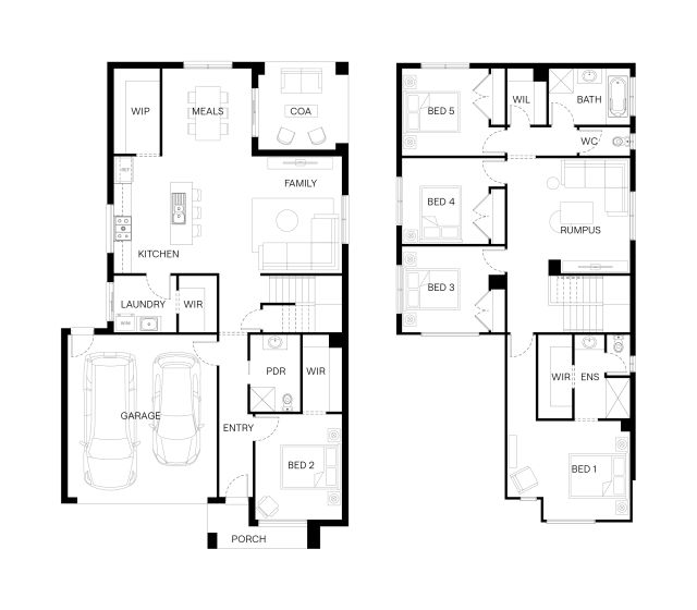 The Torquay combines family connection with private retreat across two levels. Downstairs, the kitchen anchors an open-plan meals and living area that flows to the outdoors, with a theatre for added flexibility. Upstairs, four bedrooms surround a central rumpus, while the spacious main bedroom offers its own ensuite and walk-in robe. With a fifth bedroom on the ground floor, this home is ready for multi-generational living or growing households.